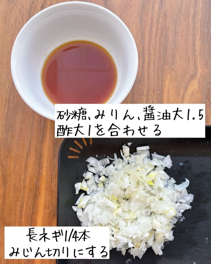 1.長ネギを切りタレを合わせておく