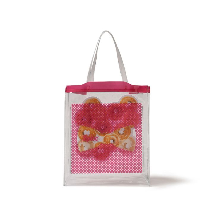 「ラッピングも機能的に」をコンセプトに、Ziploc®そのものにリボンをかけロゴをピンクにあしらったデザインバッグに仕上げられた。