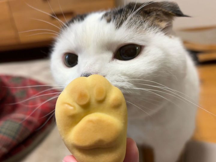 飼い主がお伊勢さんで買ってきたおみやげ。めっちゃ肉球やん! 俺の肉球と比べてみる?