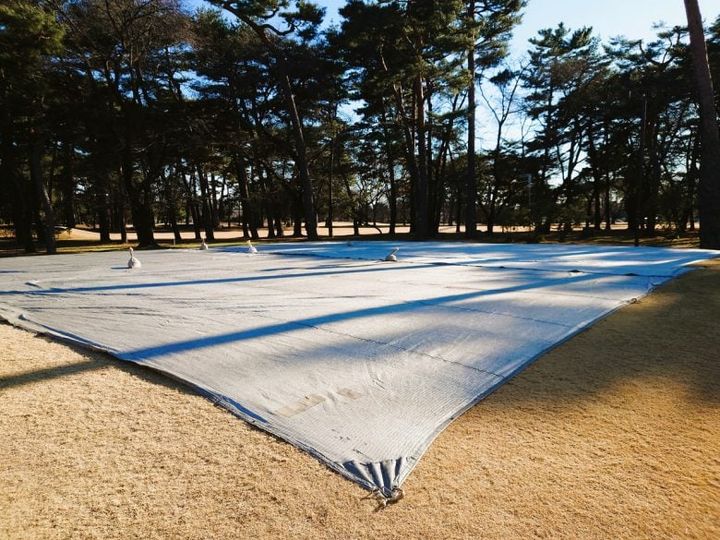 私が勤めるゴルフ場では、グリーンを霜や凍結から保護するためにカバーをかけています。グリーンカバーは、コース課のスタッフが数名がかりでかけなければならないほど、かなり力のいる作業。冬の風物詩とも言える光景ですが、ゴルフ場によっては次の日のカップ周辺しか保護しないという所もあるのだとか。しかも、前日にしっかりカバーをかけたとしても、夜間に冷え込んだ日はどうしても凍ってしまうもの。カバーがかかっていたところは、凍っていないかもしれないけれど、絶対に凍っていないとも言い切れないから難しいのです。