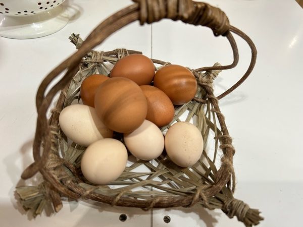 先生のお宅の烏骨鶏ちゃんとボリスブラウンちゃんが産んでくれた新鮮卵ちゃん。鶏ちゃんには可愛いお名前付いてます。裏山を駆け抜けて餌を食べてるとっても元気な鶏ちゃん達です。