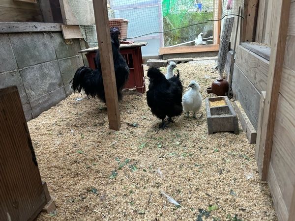 2次発酵の間はお庭を楽しませていただきました。先ほどの卵の親子ちゃん達にご挨拶とお礼を。大きな声で「コケコッコー」のお返事いただきました。