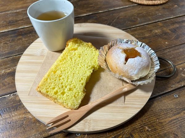 その卵で先生が焼いてくださったふわふわ濃厚なシフォンケーキとパンをいただきながらゆっくりと楽しいお時間過ごします。