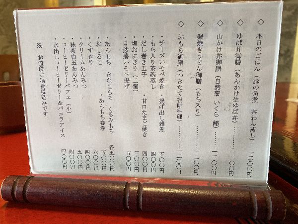 これだけお餅メニューを揃えたお店なんて、なかなか出会えないのではないでしょうか?メニューに迷いそうですが、私は来る前から決めていた「つきたてのおもち御膳1,100円」を注文しました。