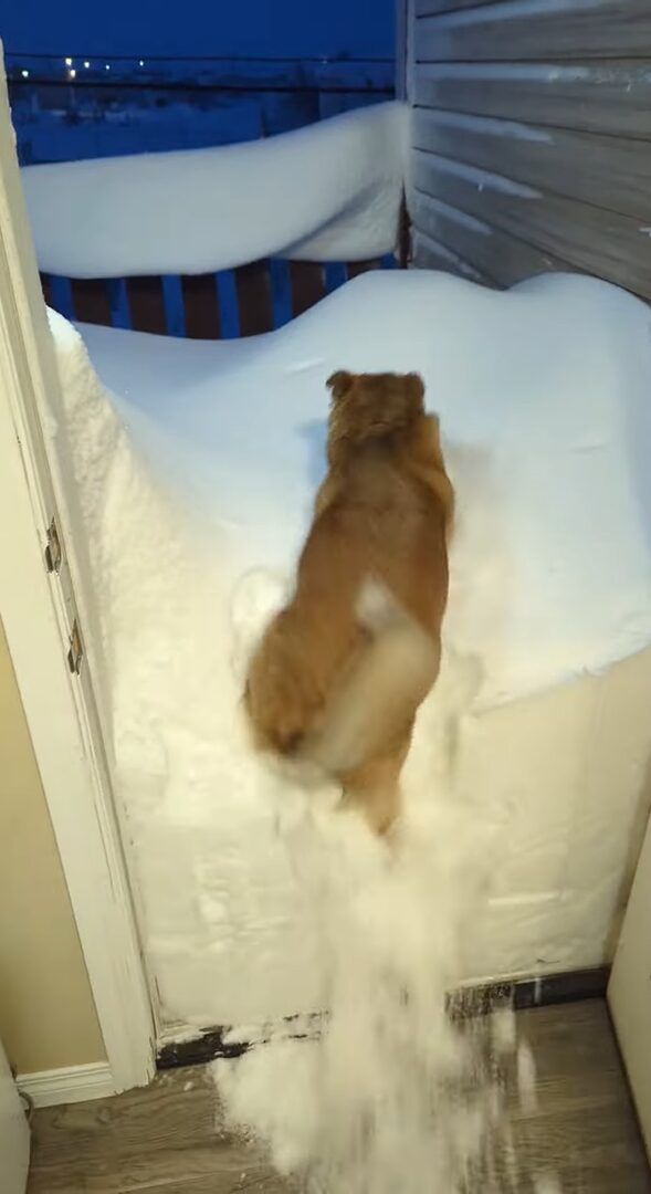 3. 玄関前に積もった雪。雪かきも大変そうと思ったら・・愛犬が雪に向かってダイブ!!【海外・動画】