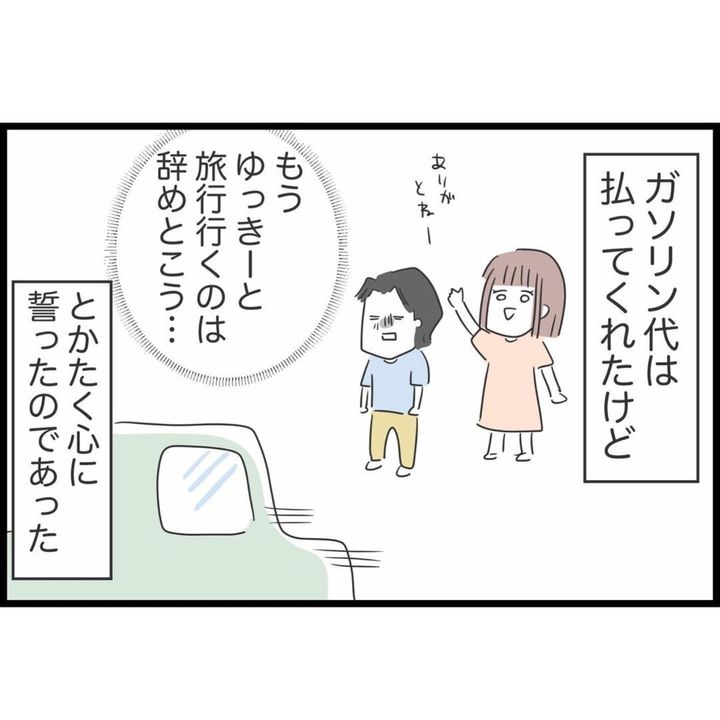 二日酔いと寝不足で完全にダウンしたゆっきー。そんな彼女をみて、すみれさんたちは旅の続行を諦めそのまま帰宅しました。ゆっきーのあまりにも自分勝手な行動に「たとえガソリン代を払ってくれたとしても、もう一緒に旅行に行きたくない」と感じたようです。