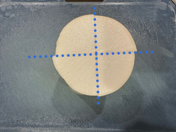 手を傷めないためには皮は重要な役割を担ってきますので、これはマストです。そして縦に立てた状態で4等分。これだけで下準備は完了です。