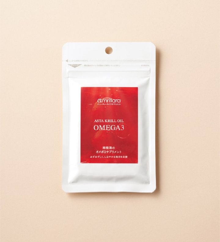 体内では合成できない必須脂肪酸・オメガ3(DHA、EPA)に加え、美容効果の高いアスタキサンチンやビタミンEを配合。「オメガ3脂肪酸は細胞膜を強化してくれて、脳の老化防止にも繋がるという目から鱗の情報を聞いてから、毎日欠かさず摂るようにしています」(ヘアメイク・菊地美香子さん)