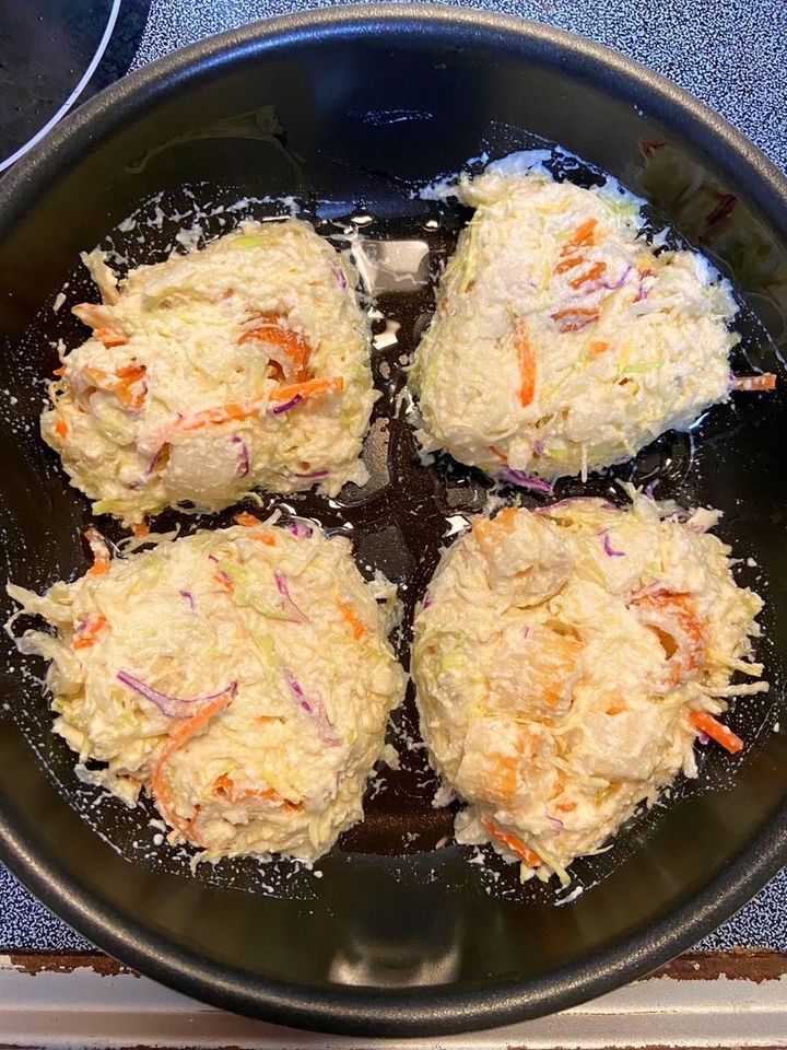 ②形を整えたら周りにサラダ油をひき、中火で10分ほど焼く