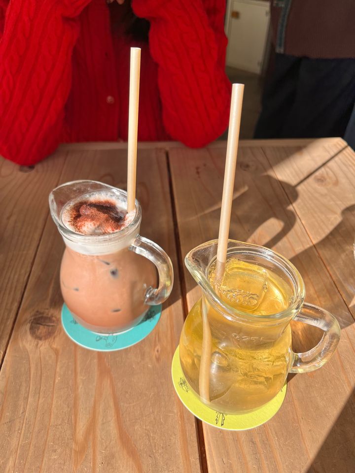 アイスチョコレートとジャスミンティーをオーダーして友達とキャッチアップ!