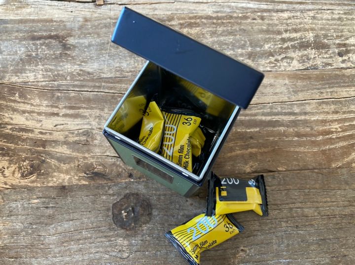 カメラ缶チョコレート 648円(税込)