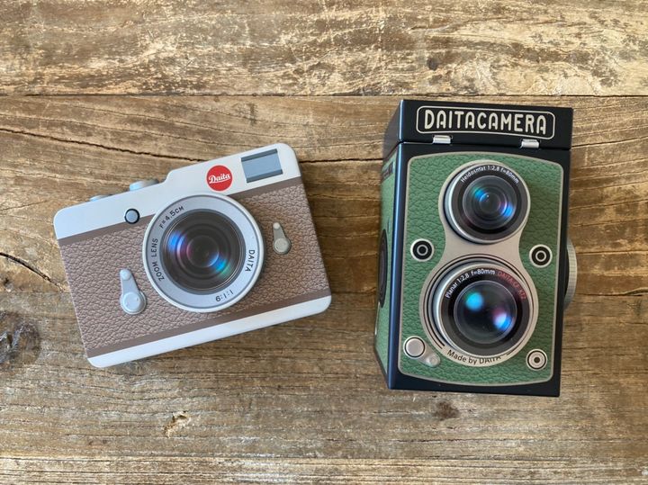 レトロな二眼レフカメラデザインは、