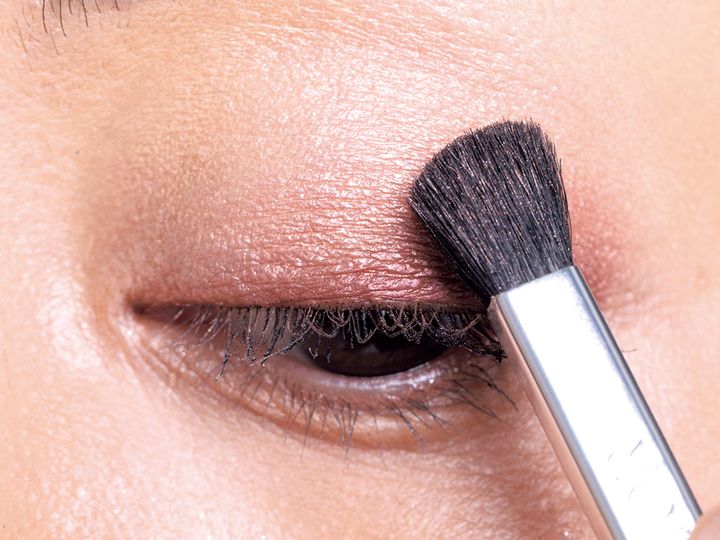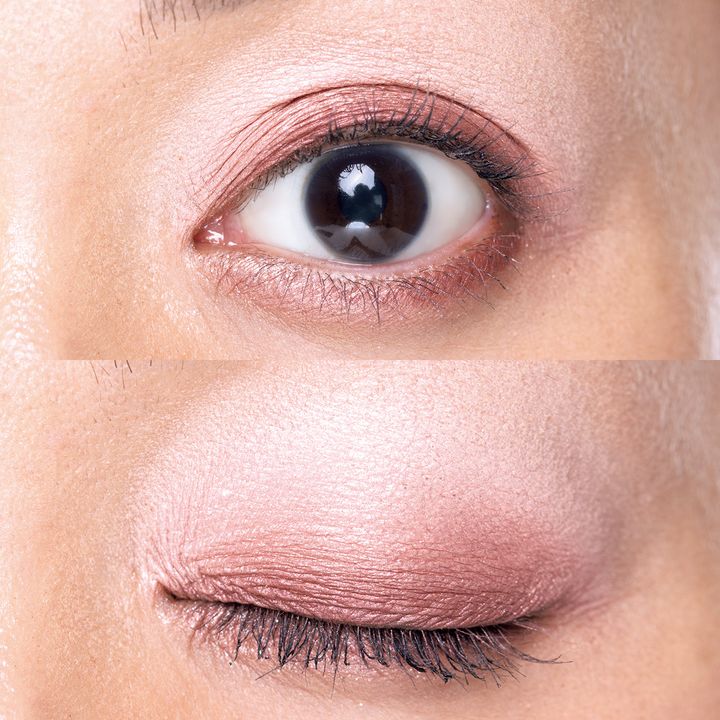 TPOもファッションも問わないローズとブラウンの重ね塗り。テクニックフリーながら目を開けても閉じても品よく映える。