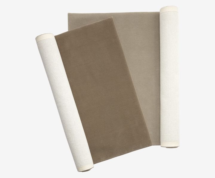 絨毯の老舗〈山形緞通〉が半世紀にわたり作り続けている「クラフトン」は、緻密に毛糸を打ち込んで作る職人技の賜物。今回、新たに〈ヤエカ〉が監修する無地の絨毯コレクション「ニュークラフトン」を発表した。原料は細く上質な羊毛。染め分けて少しずつ色を変えた糸をブレンドすることで、奥行きのある仕上がりに。弾力のある質感も魅力。