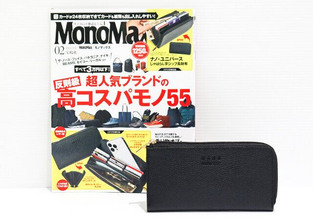 モノマックス2月号の付録は、高級感のあるレザー調素材を使用した長財布。ゴールドの金具と相まって、付録のお財布には見えないくらい高見えします。