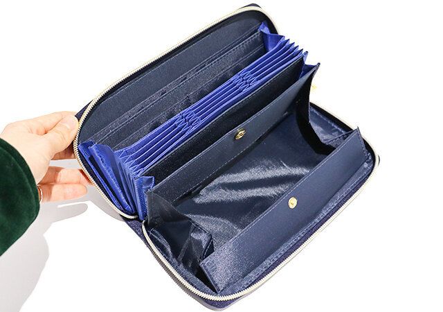シンプルながらも使いやすく、手間をかけずとも整理整頓ができるよう設計された嬉しい長財布。金運を呼び込むとされるネイビーカラーで、年齢や性別を問わず使いやすいデザインとなっています。持っているだけで金運がアップしちゃうかも…♡