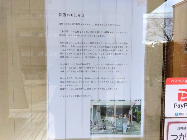 <箕面発>みのおキューズモールから西へ徒歩3分。「社会にいいお買い物」をコンセプトにしたセレクトショップの「B‐MART」が2024年3月末で閉店します。