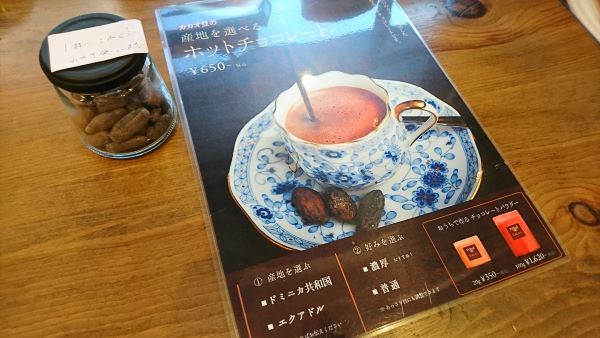 店内では温かいホットチョコレートや冷たいアイスを楽しむことができます。産地を選べるホットチョコレートは、1杯にカカオ豆30粒を使用した、世界一濃厚なホットチョコレート!チョコレートアイスは濃厚な味と優しいくちどけです。