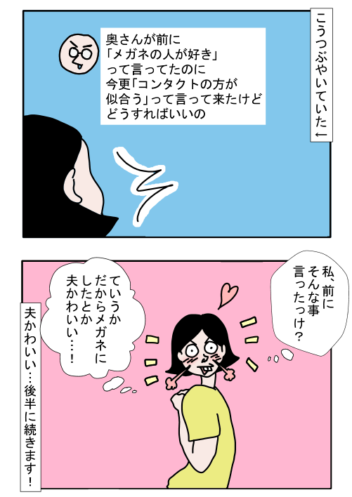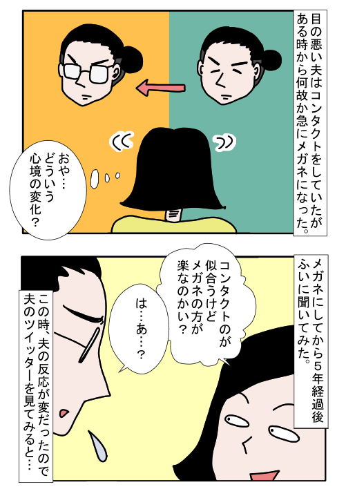 ずっとコンタクトを付けていた夫が、メガネをかけ始めたそうで…?
