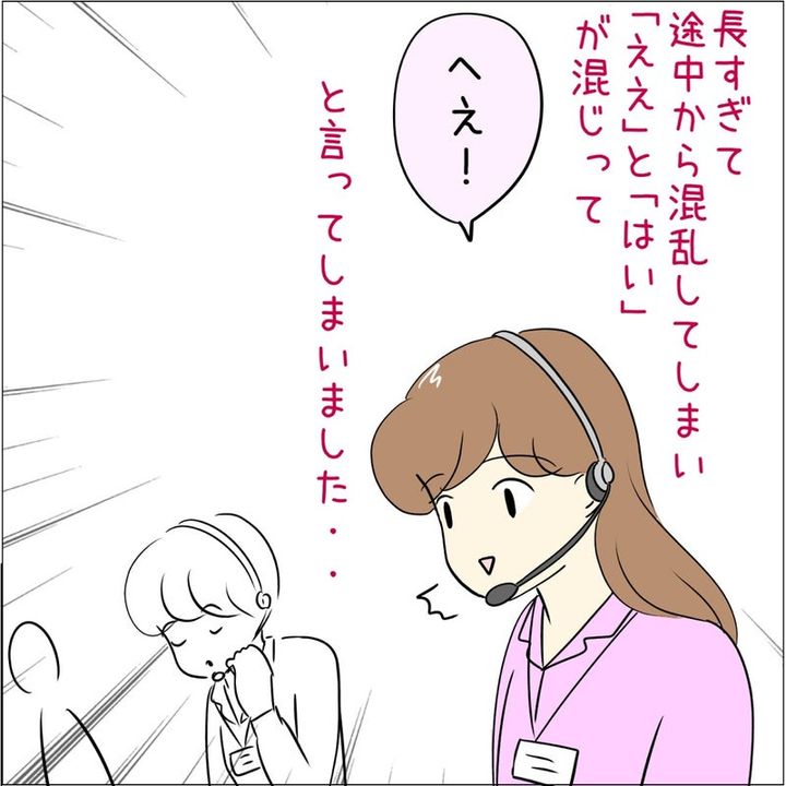 コールセンターで働いていた読者。話の長い客に対して、「はい」「ええ」などと相槌にバリエーションをつけていましたが、話が長すぎて混乱し、「へえ!」と言い間違えてしまったそうです。