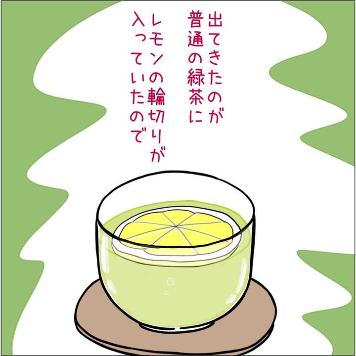 オーストラリアの飲食店で、「ブラックティー?orグリーンティー?」と聞かれたので、「レモンティープリーズ」と返答。テーブルに運ばれてきたのは、緑茶にレモンの輪切りを浮かべたものだったようです。