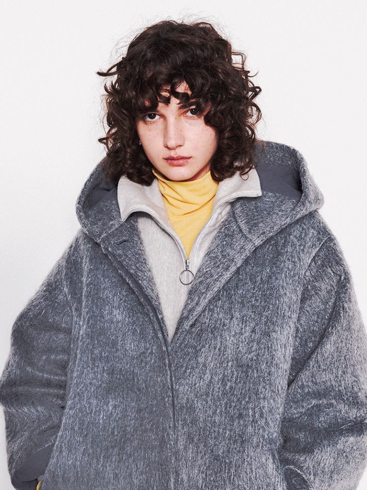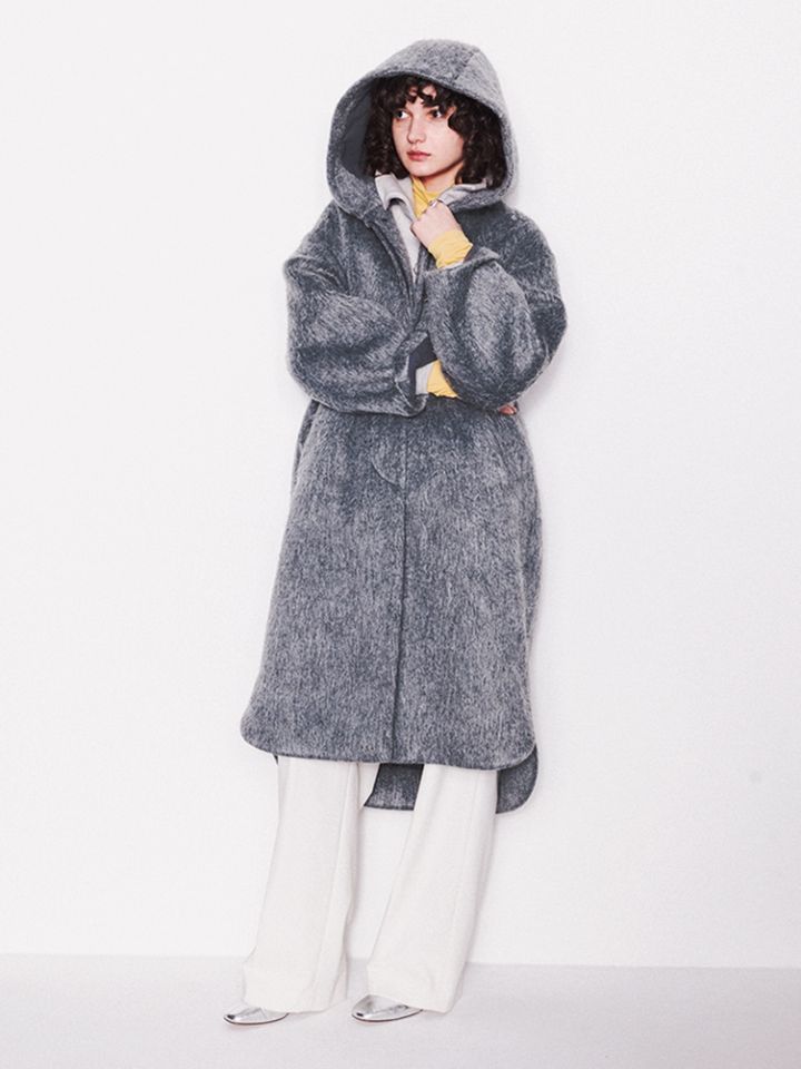 【POINT】リサイクルポリエステルとウールブレンド素材のシャギーコート。ふんわりと空気を含み、軽くて暖かく使い勝手のよい1枚。ゆとりのあるサイジングなので、中に着こんでも着ぶくれせずすっきり見せられてエレガント。