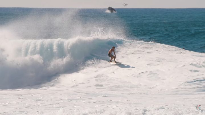 3. 【奇跡的な瞬間】波に乗るサーファーの後ろに!意図せず撮れた奇跡的なコラボの瞬間の動画がスゴイ!