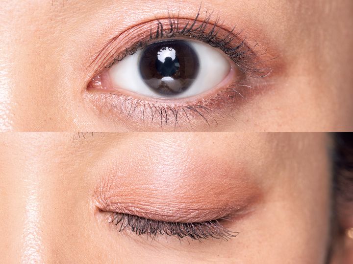 2を二重幅から上に入れ、4を和らげつつ血色感を足しながらまぶたをナチュラルにドレスアップ。黒目を印象的に見せます。