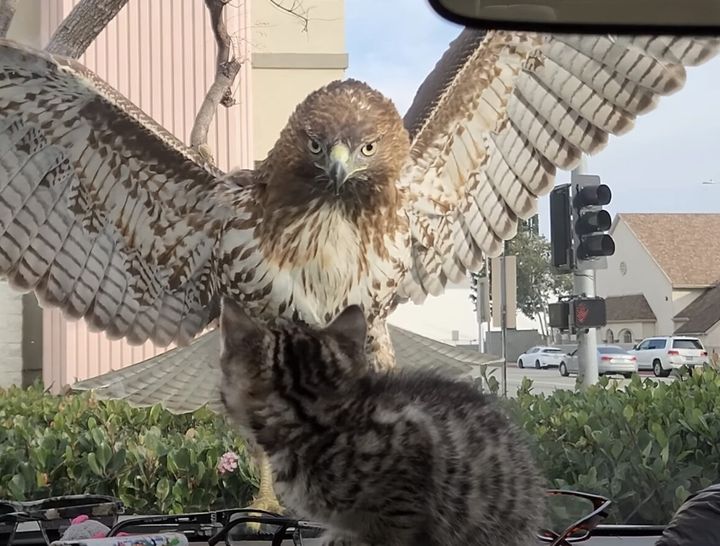 怖すぎる! 子猫を狙って大きな鳥が襲ってきた!