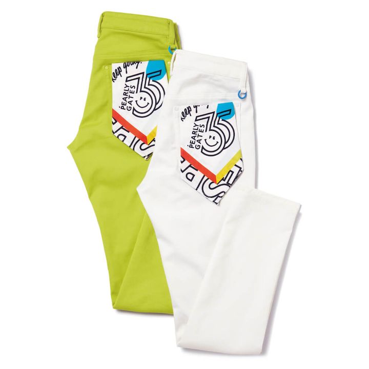 ゴルフバッグやパーカ、ポロシャツ、パンツなどのアイテムにも、35周年のロゴデザインをON! 2月1日より、パーリーゲイツ全国直営店、一部展開店舗、公式オンラインショップにて順次発売されます。さらに、これらのアイテムのいくつかは日本だけでなく韓国のパーリーゲイツでも展開予定。35周年の勢いを感じるカラフルなロゴデザインは見ているだけで心が躍ります。