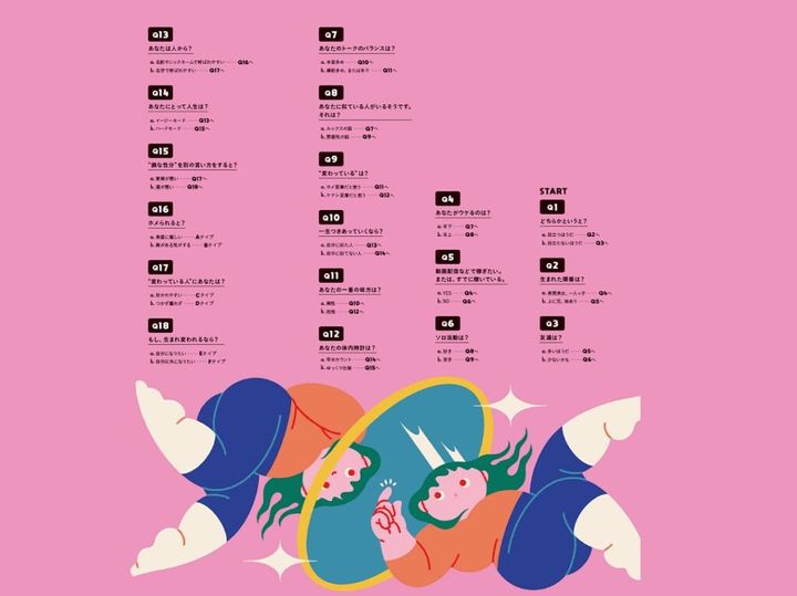 自分の個性が掴めていなくても、いわゆる陽キャ、陰キャでいうとどちらなのか、チームやグループの中で自然に収まりやすいポジションがどこなのかなど、なんとなくのイメージはあるもの。チャートテストで、あなたがぼんやりと感じている自分らしさについて調べてみましょう。それが、個性を掴む第一歩になるはずです。下のテストで各質問のa、b、どちらか近いほうを選び指示通りに進んでください。最後にたどり着いたA~Fがあなたのタイプです。