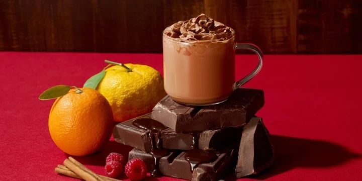 「リッチホットショコラ」にはダークチョコレートを使用し、リッチな大人の味わいに。『Meets Fruits』をテーマに、オレンジとシナモン、トッピングとしてショコラホイップにオレンジ・ゆず・ラズベリーを使用しており、エスプレッソありはカカオの芳醇さを、エスプレッソなしはよりフルーティーな味わいをお楽しみいただけます。