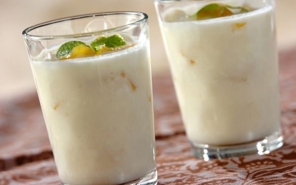 甘酒とプレーンヨーグルトを混ぜる、飲みごたえのあるドリンク。ヨーグルトの酸味と甘酒の甘さが絶妙でさっぱりしています。甘酒に甘みがあるので、砂糖なしでも十分。缶詰の代わりにマーマレードやイチゴジャムをトッピングしても美味しいです。