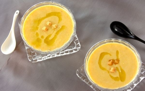 甘酒と無調整豆乳で作った冷製ポタージュは、コクがありながらさっぱりしています。生のトウモロコシは蒸し煮にして甘みを引き出しましょう。下準備ができたら、すべてミキサーにかければOKの手軽さもうれしいですね。ハンバーグやムニエルなどの洋食献立におすすめ。