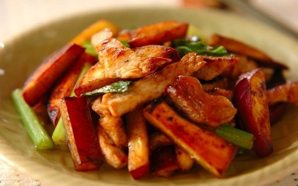 厚切りの豚肉に甘酒で下味をつけます。甘みやコクがプラスされるだけでなく、お肉がやわらかくなるので一石二鳥。味付けにも甘酒を使うので、やさしい味わいに仕上がりますよ。サツマイモは豚肉と同じぐらいの大きさに切ると食べやすいです。
