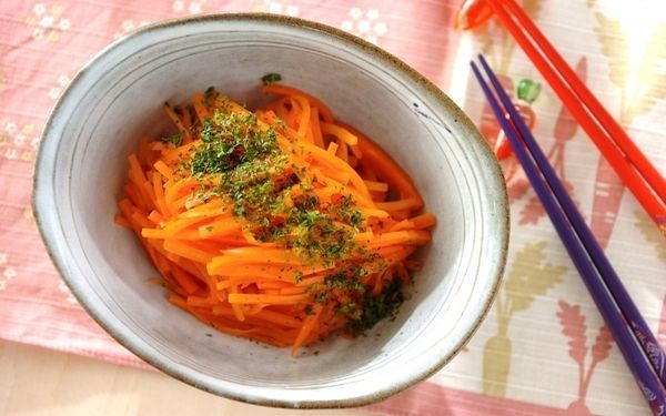 ニンジンをたっぷり食べたいときはキャロットラペがベスト。ハチミツと甘酒、酢で味付けするのがポイントです。甘酒を少量加えることでコクが増して、デリのような本格的な味わいに。揚げ物や肉料理の副菜はもちろん、お弁当おかずにも良いですね。