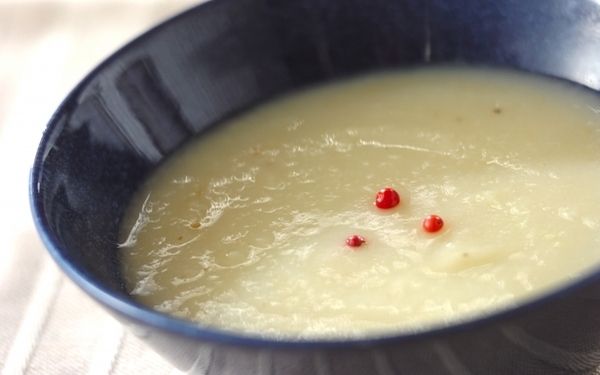 カリフラワーを使るポタージュ仕立てのスープです。甘酒は加熱しすぎると風味が飛んでしまうので、最後に加えるのがポイント。カリフラワーだけでは淡泊になりがちですが、甘酒のコクでワンランク上の一杯に仕上がります。
