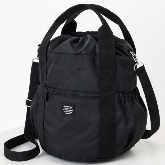 トートバッグ、巾着バッグ、マチ付きトートバッグの3WAY仕様で使える「moz(モズ)」のエコバッグがまたランクイン。老若男女、コーデ、シーン問わず使いやすい、ブラックカラーです。