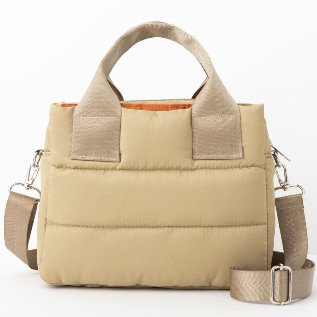 軽量のキルティング生地は、旅行にはもちろん普段のお出かけにもぴったり!付属のポーチにショルダーバッグのストラップを付けると、サコッシュとしても使えます。