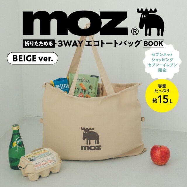 『moz 折りたためる 3WAY エコトートバッグ BOOK BEIGE ver.』(宝島社)