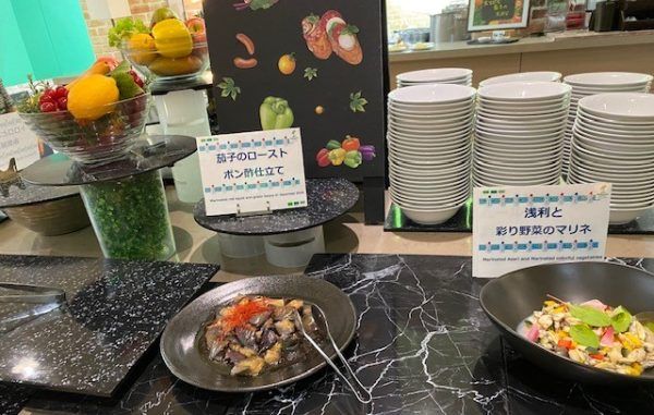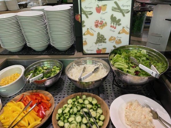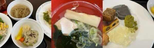 品数少なめ(全67種類)のビュッフェかと思いきや・・・お腹はいっぱい!真ん中は、麺なし、塩ラーメンのスープとチャーシューなどの具材のみ(苦笑)デザートのはっさくゼリーでさっぱり!