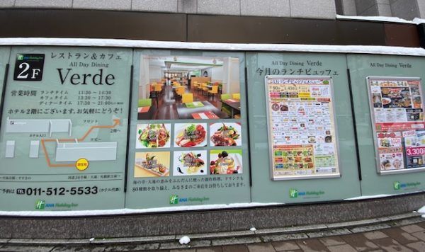 ホテル(ANAホリデイ・イン札幌すすきの)を見つけたら、わかりやすい!メニューに順路!うれしい気配り。レストランは、ホテルの2階にあります。