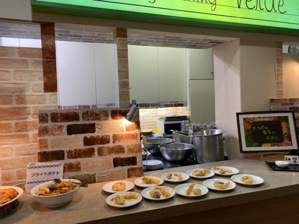 日替わりライブキッチンは大海老と茄子の天ぷらでした。