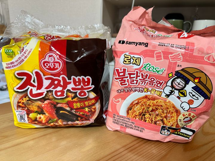 ラーメンです!ドンキにも最近並ぶようになったこの ブルダックポックンミョンもお安くGET^^ レートの関係もあるから一概に言えないけど、200~300円くらい安いです!5食入りで4500wでした♬