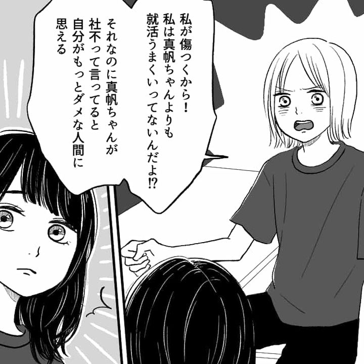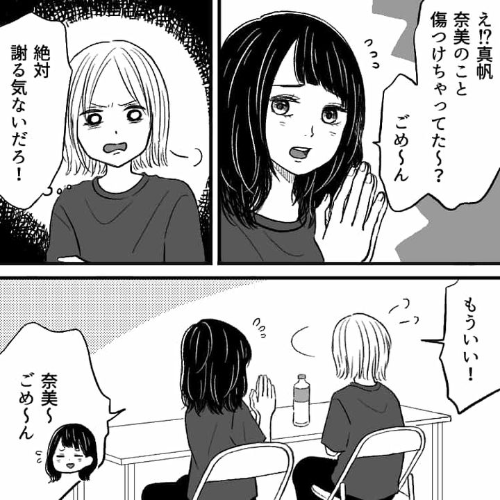 真帆は謝ったものの、謝る気のない態度に怒る主人公。