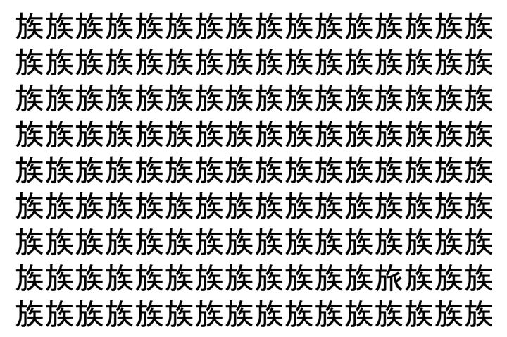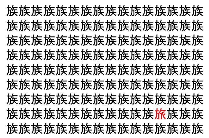 画像の中には、「族」という漢字が縦に9行、横に16個並んでいます。 全部で144個となりますが・・・、そのうち1つは「異なる漢字」となってますよ!!