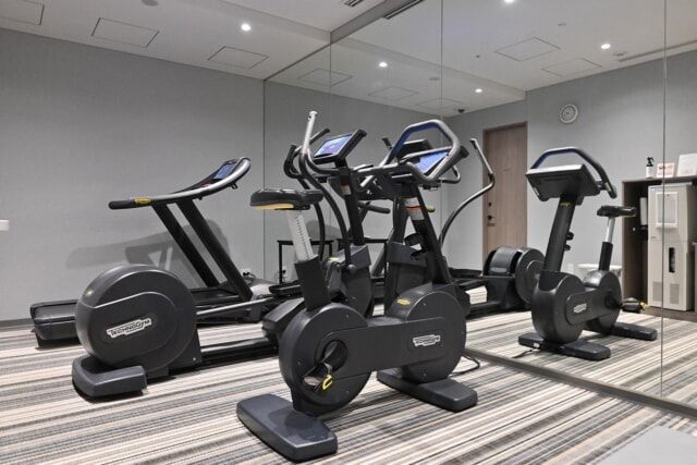 ▲無料のジムにはテクノジムのフィットネスマシンを備えます