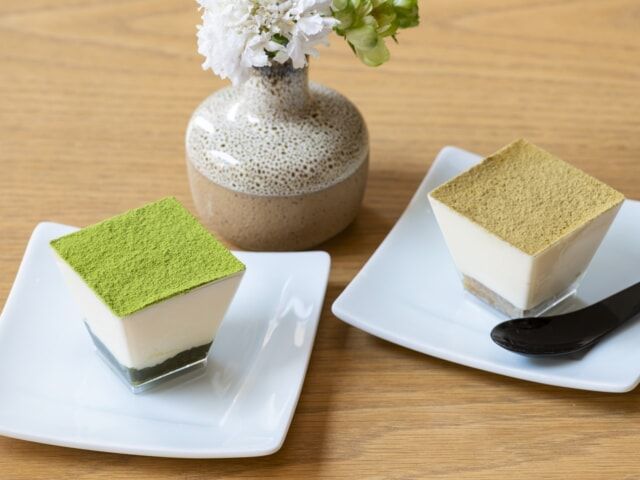 デザートのイチ押しは、抹茶とほうじ茶のパウダーが色鮮やかなティラミスです。マスカルポーネを使った真っ白なクリームはとってもミルキー。底のスポンジにも、それぞれ抹茶とほうじ茶を染み込ませた風味豊かな和風スイーツです。