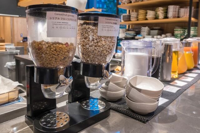 ▲シリアルやデトックスウォーター、数種類のドリンクがあります