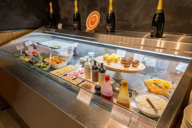 メイン料理のほかに、ビュッフェに並ぶサラダやデザート、ライブキッチンの鉄板焼きなど、様々な料理をフリーで楽しめます。フワトロのオムレツはプレーンで、生クリームや塩、隠し味のマヨネーズなどで下味がついます。